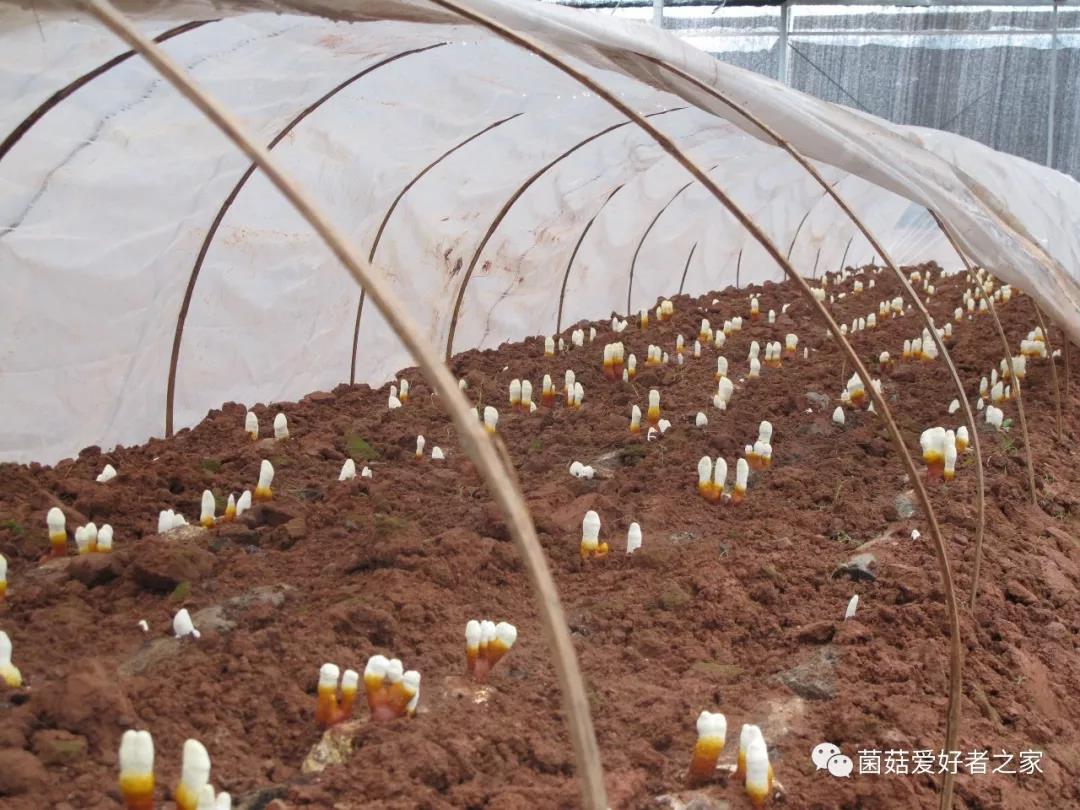 10、芝蓋形成期,加大噴水量和噴水次數(shù),保持棚內(nèi)空氣濕度在85%-95%,白天敞棚降溫,夜間關(guān)上棚膜增溫,減少晝夜溫差,及時(shí)加大通風(fēng)量,保持空氣新鮮,并適當(dāng)增加光照強(qiáng)度,促使芝蓋形成。