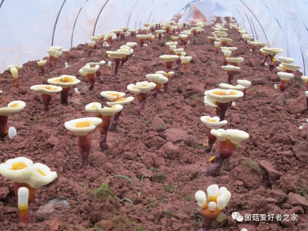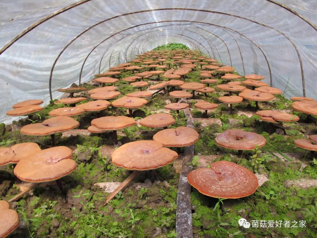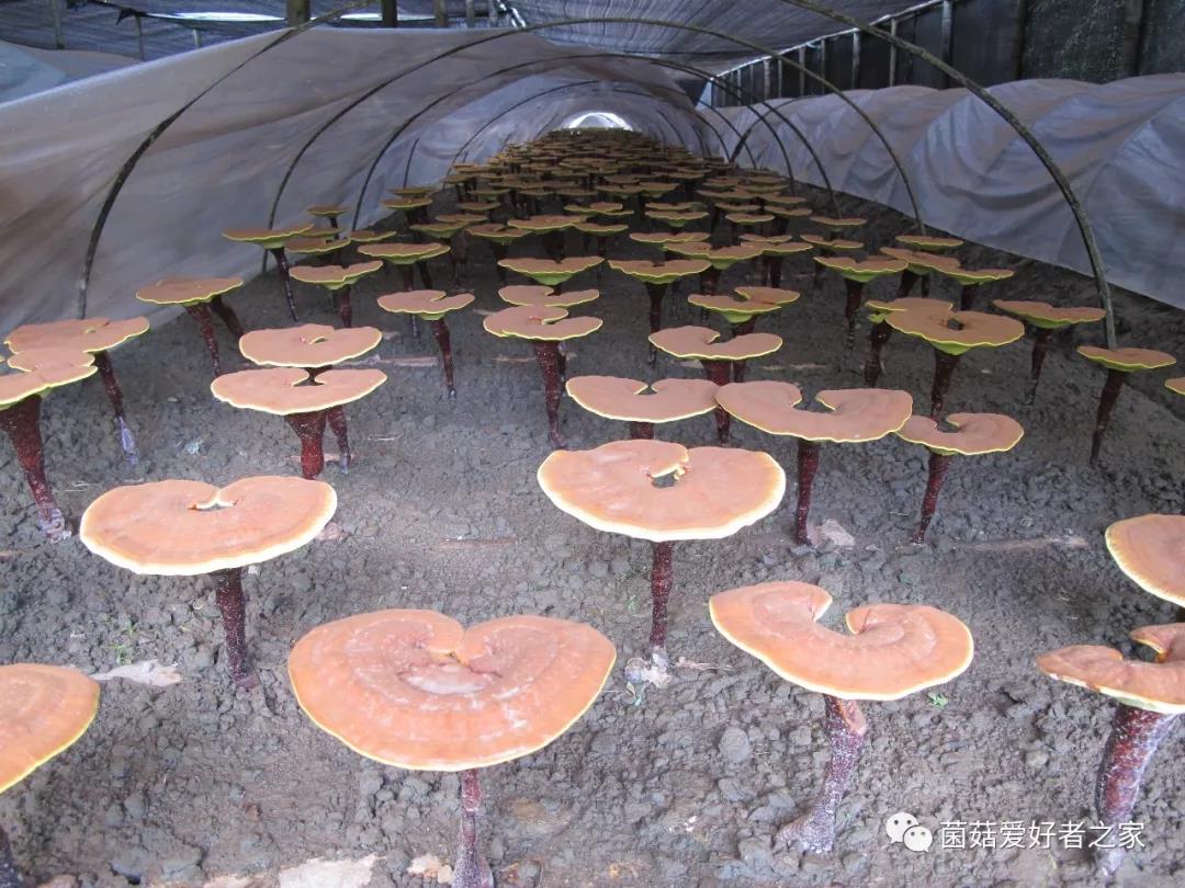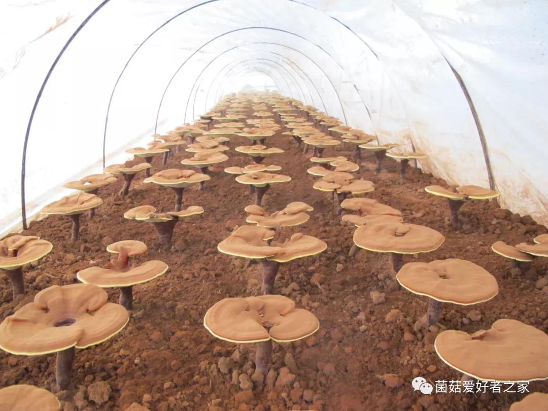 11、當(dāng)芝蓋擴(kuò)展到最大,黃白邊基本消失,芝蓋開(kāi)始彈射孢子粉,表明靈芝進(jìn)入成熟期。當(dāng)芝蓋不再增大,蓋緣變成褐色并與中部一致、芝蓋下面色澤鮮黃一致時(shí),說(shuō)明靈芝完全成熟了。