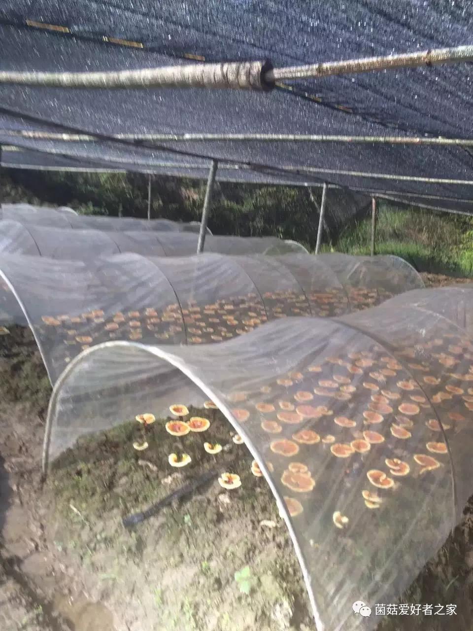 6、依山傍水,搭建遮陽(yáng)網(wǎng)、薄膜雙層覆蓋的種芝大棚,棚內(nèi)做畦,畦四周開(kāi)排水溝,防止雨天積水。